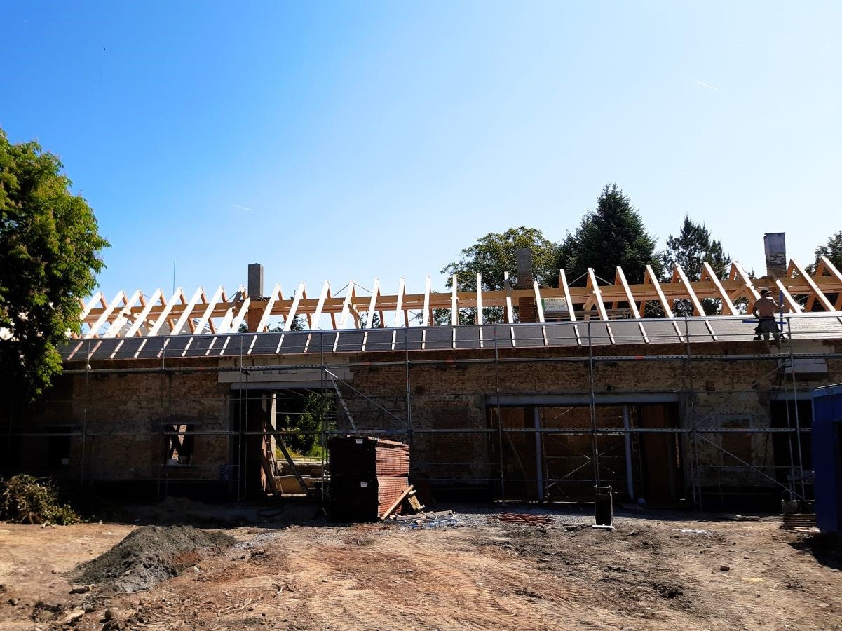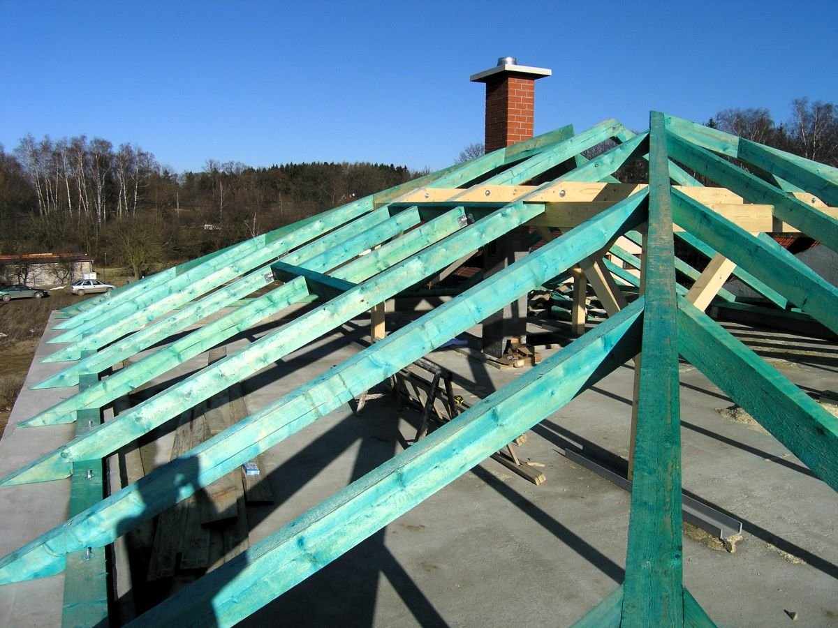 Střešní konstrukce z tesařsky vázaných krovů