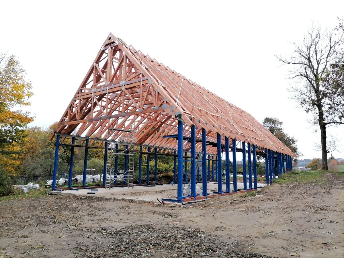 - Úspora: Lehká a ekonomická technologie dřevěných vazníkových konstrukcí.